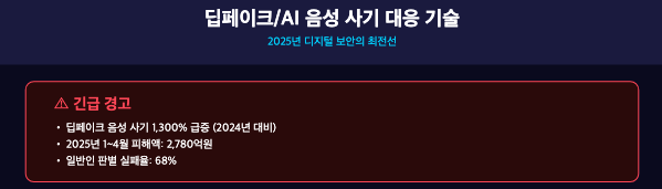 인증 기술과 AI 검출 기술이 각광받는 이유 📊 충격적인 현실: 1300% 급증한 딥페이크 사기 2025년 현재, 우리는 디지털 신뢰의 위기에 직면해 있습니다. 딥페이크 기반 음성 사기 시도가 전년 대비 1300% 증가하며 하루 평균 7건에 달하는 수준으로 확대되었다는 충격적인 통계가 발표되었습니다. 더욱 놀라운 것은 딥페이크 범죄로 인한 전 세계 피해액이 단 4개월 만에 2억 달러(약 2,780억 원)에 달한다는 … 더 읽기